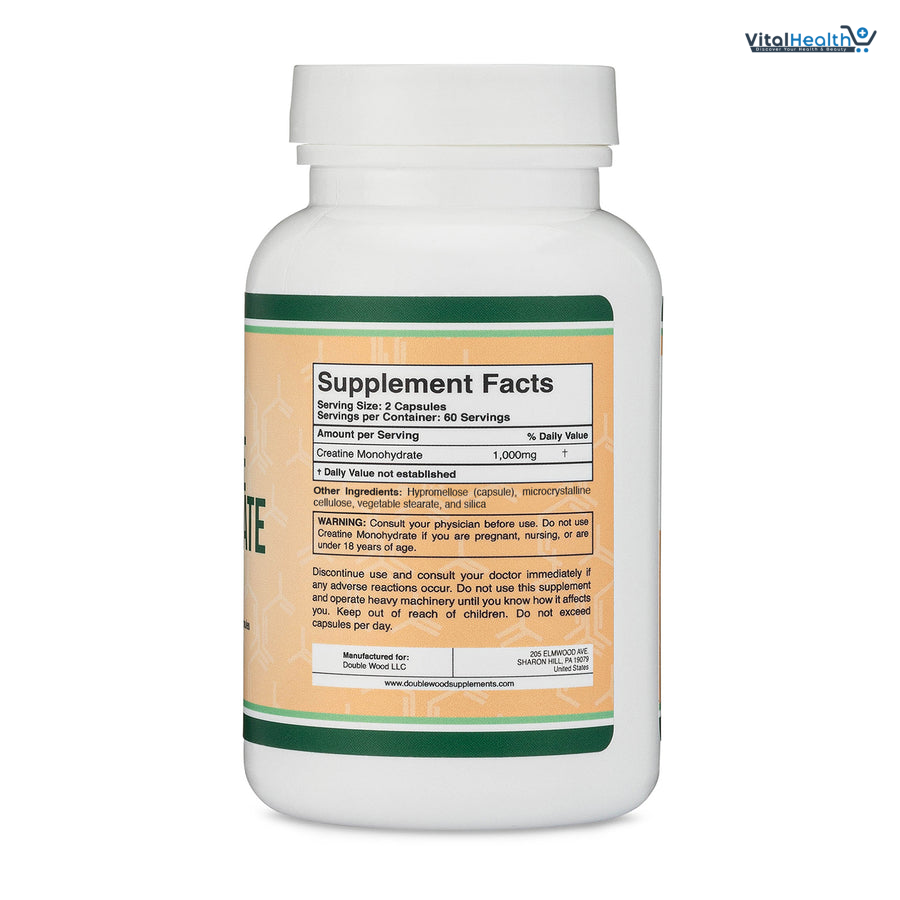 - TWO MONTH SUPPLY: Double Wood includes 60 servings of 1,000mg Creatine HCL (120 creatine monohydrate capsules with 500mg per capsule)