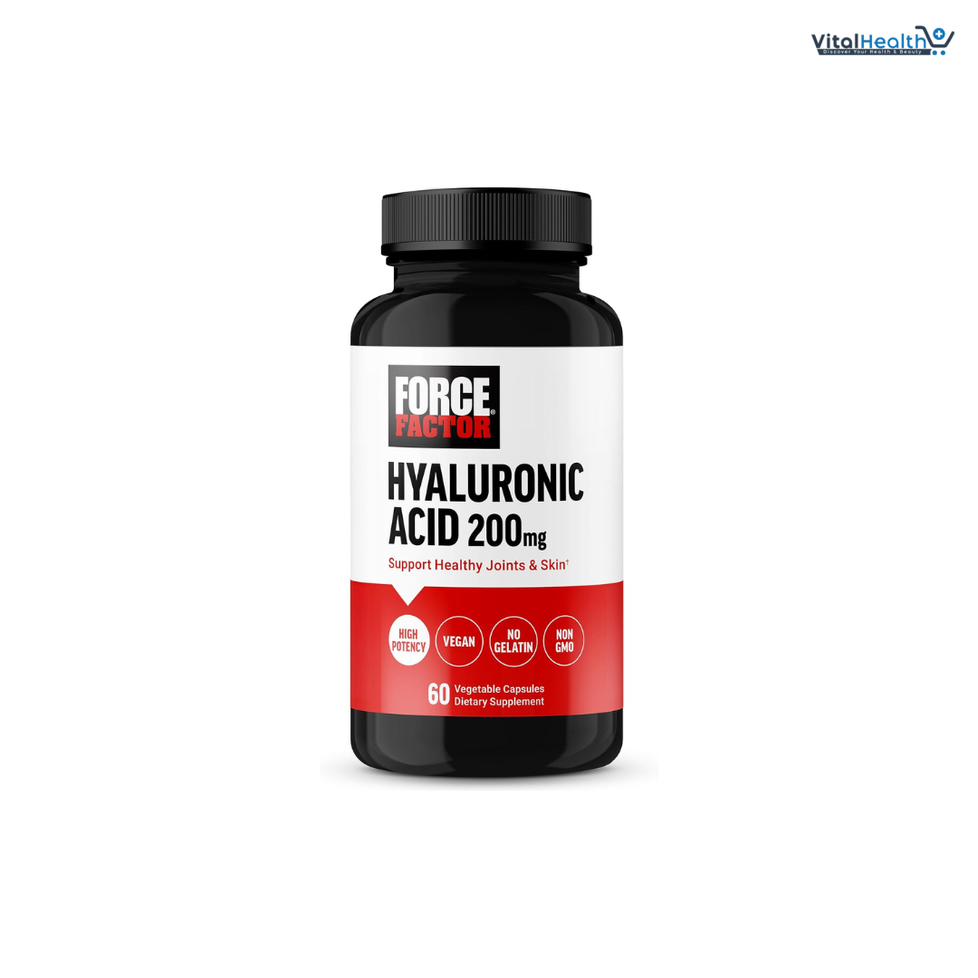 This premium quality Hyaluronic Acid capsules also bring a touch of natural beauty to your daily routine. When combined with Force Factor Biotin, they create a dynamic duo that elevates the health of your hair, skin, and nails. Experience enhanced skin moisture retention, support for reduced wrinkles, and a radiant complexion, all while enjoying the assurance of a high-quality, better-for-you supplement. Made in the USA in GMP-certified facilities, Force Factor Hyaluronic Acid Capsules are rigorously tested to ensure potency, purity, and safety. Elevate your wellness journey with Force Factor today.