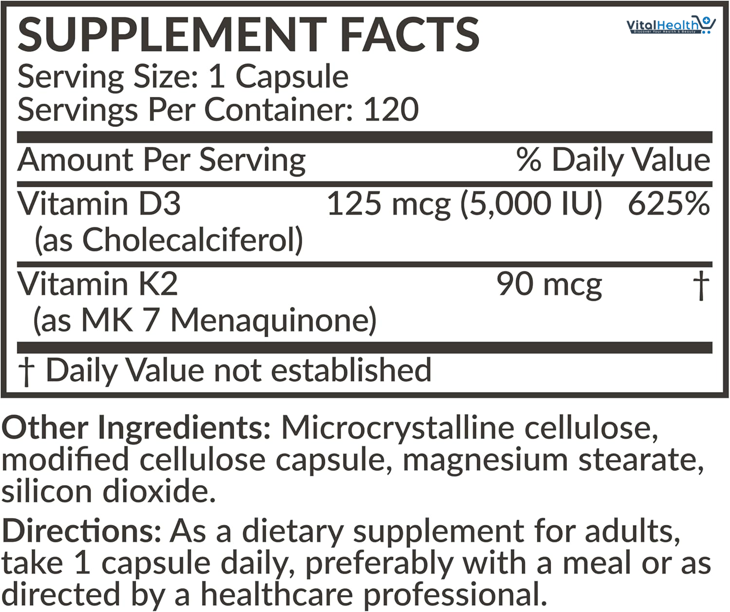 Vitamin D3, Vitamin K2 (as MK 7 Menaquione).