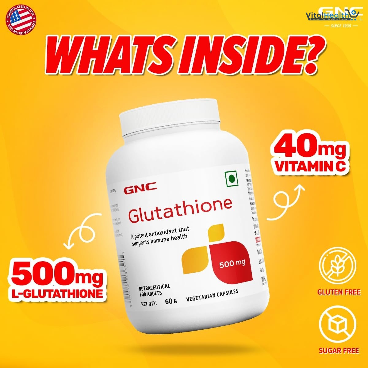 The price of GNC Glutathione 500mg With Vitamin C (60 Veg Capsules) in Pakistan is Rs. 8,500.