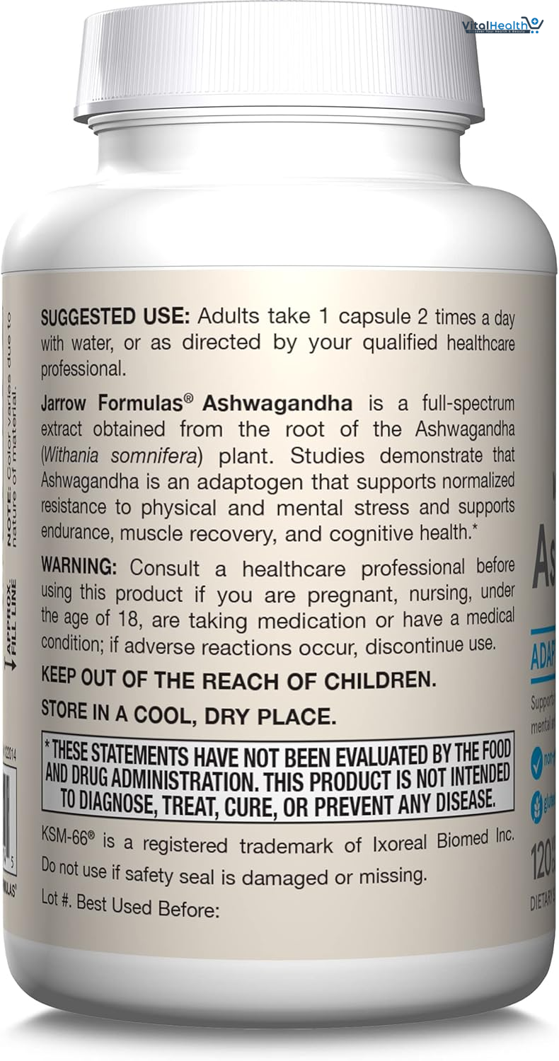 We use superior science to make smarter formulas like Jarrow Formulas Ashwagandha. Experimental studies demonstrate that Jarrow Formulas Ashwagandha is an adaptogen that supports endurance, muscle recovery, and cognitive health. KSM66 Ashwagandha is a full-spectrum extract from the root of the ashwagandha (Withania somnifera) plant and has been used in the Indian tradition of Ayurveda to support overall health. Plus, it supports resistance to occasional fatigue.These statements have not been evaluated by the Food and Drug Administration. This product is not intended to diagnose, treat, cure or prevent any disease.