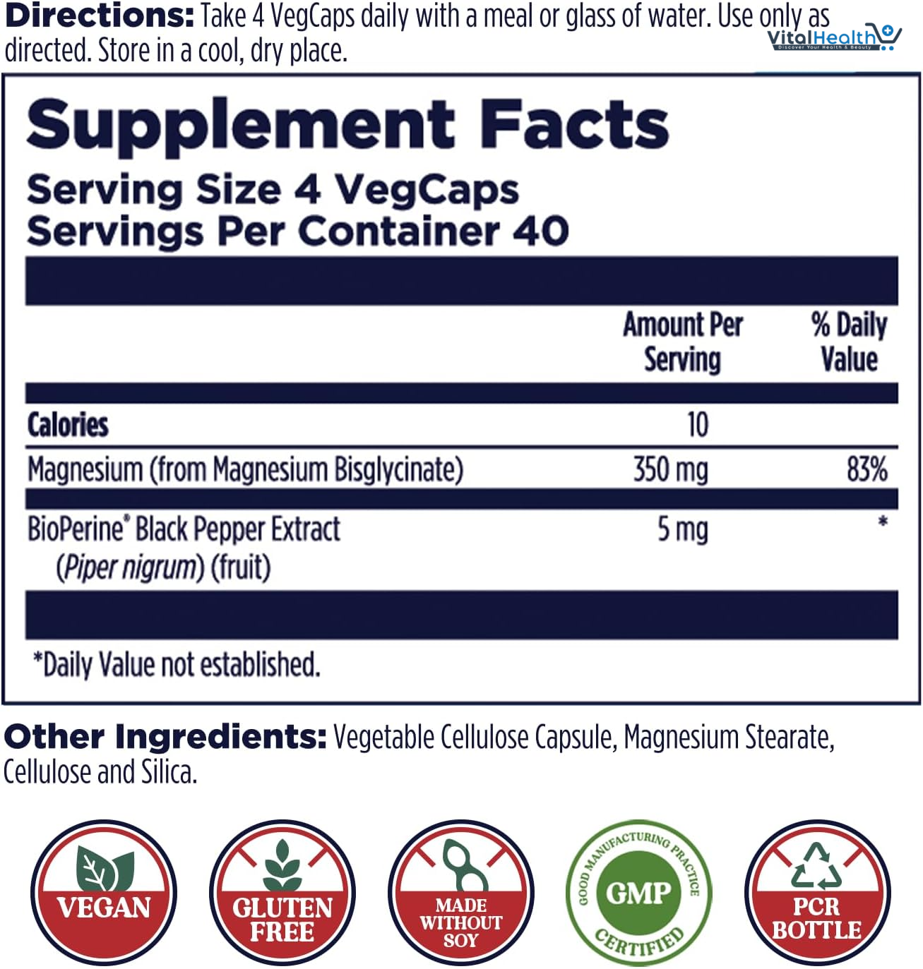 - Smart Choice: Our vegan magnesium supplement is non-GMO, gluten free, contains no soy, and comes in eco-friendly Post-Consumer Resin (PCR) bottles made from plastic removed from oceans and landfills.