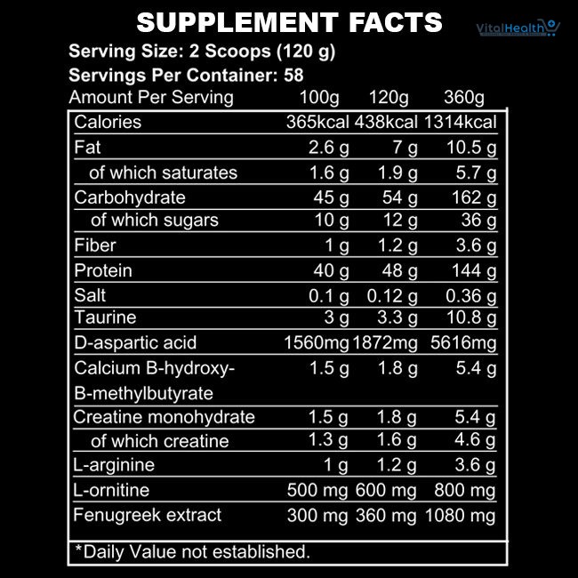 The high-protein content supports lean muscle growth while aiding in the repair of muscle tissues post-workout.