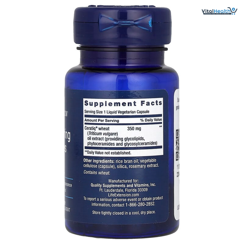 Ceratiq wheat (Triticum vulgare) oil extract (providing glycolipids, phytoceramides and glycosylceramides) 350 mg.