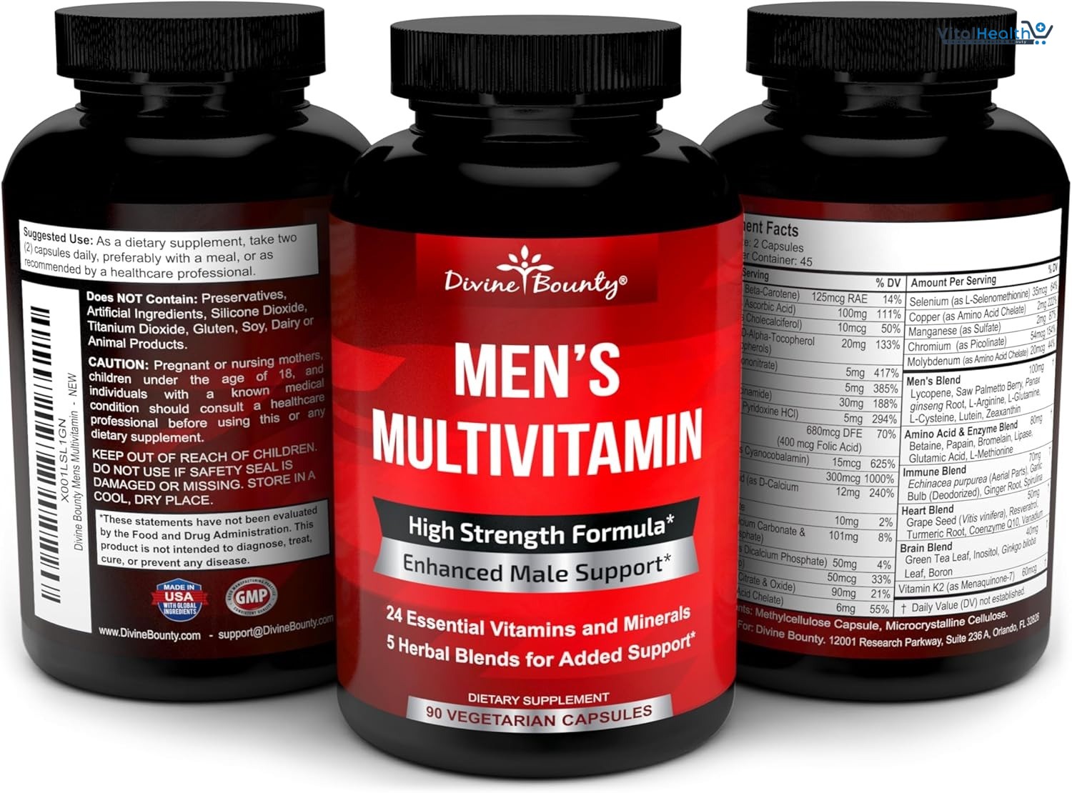 Divine Bounty Men's Multivitamins offers one of the most potent vitamin formulations, containing 24 essential vitamins and minerals, plus 5 additional blends specifically designed for men. If you are looking for superior Men's Multivitamin capsules, look no further.