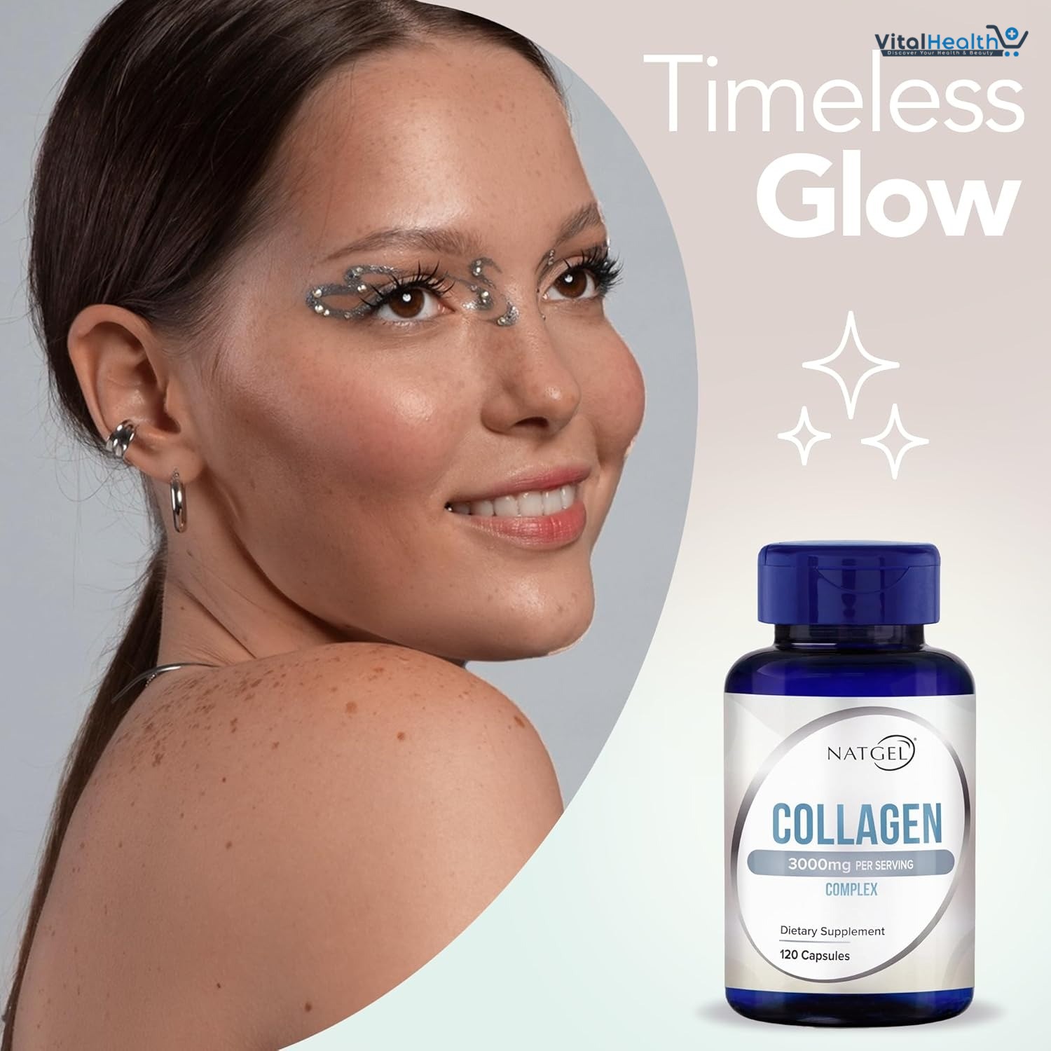NATGEL Collagen peptides 3000mg supports healthy glowing skin, helps maintain strong hair and nails, improves skin elasticity and smoothness. It provides advanced collagen support. Each serving delivers 3000mg of hydrolyzed collagen peptides (Type I & III) to promote youthful skin, stronger hair, and healthy joints.