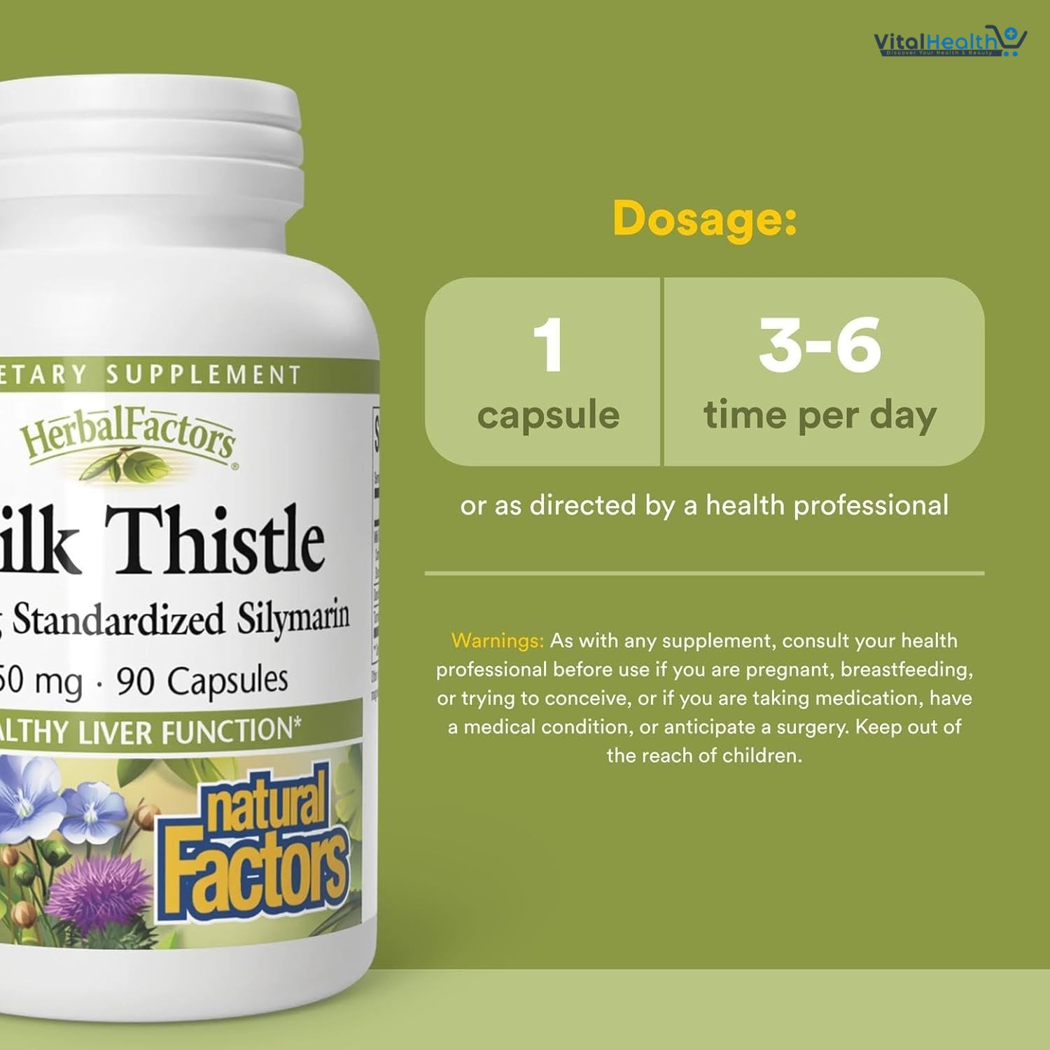 Natural Factors Milk Thistle silymarin extract contains standardized silymarin and is considered one of the highest quality milk thistle extracts available. Research has shown that milk thistle extract supports healthy liver function.