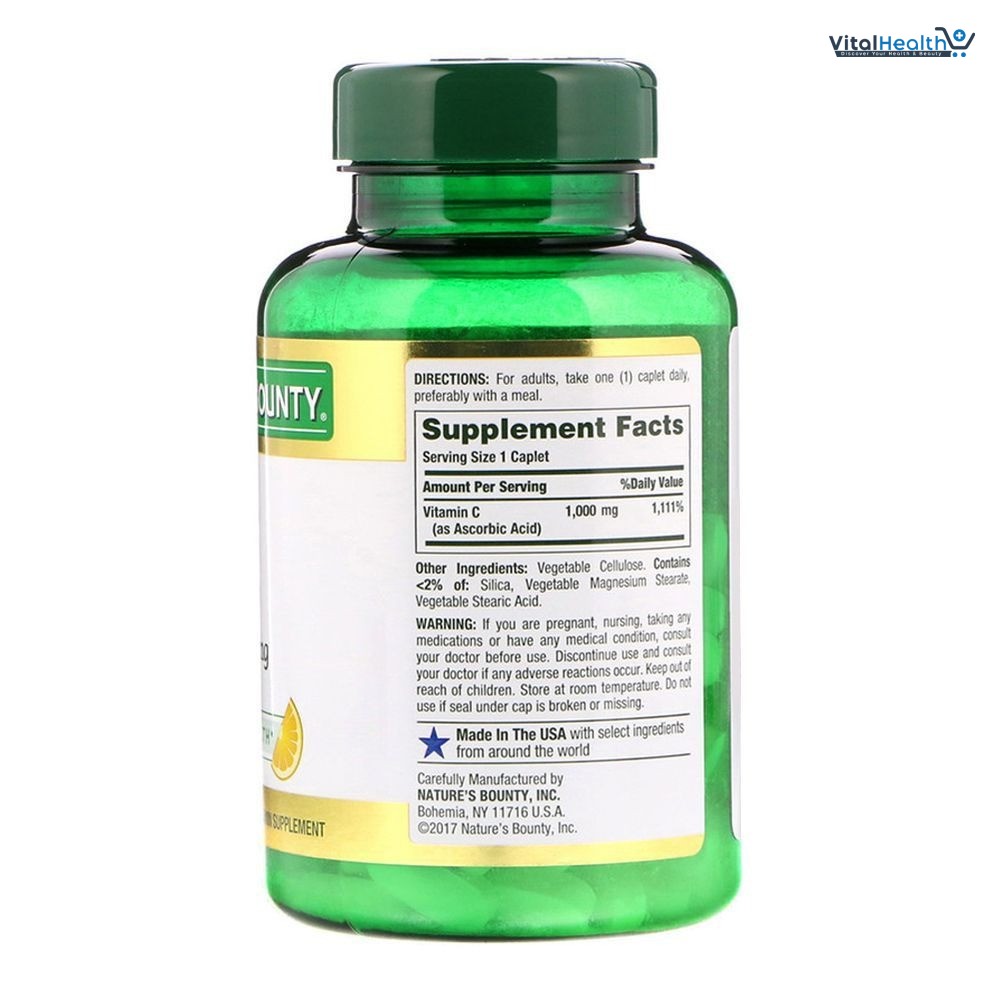 Nature's Bounty Vitamin C, Vitamin Supplement is made to improve immune system and heart's health. It consists of Vitamin C, which is an important element that allows better functioning of white blood cells. It also encourages healthy blood flow through blood vessels. It provides with antioxidant support that helps fight against cell damaging oxidative stress and makes the joints, skin, and gums strong. While it provides the body with essential vitamins, it also reduces the risk of developing aches and pains throughout the body.