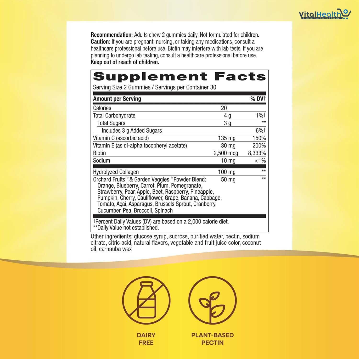 Adults are recommended to chew 2 gummies daily. There are 30 servings per container. Gummies are made with plant-based pectin. Gluten-free. No dairy, wheat, peanut, or egg. At Nature's Way, we believe nature is the ultimate problem solver. For over 50 years, we have looked to the natural world for inspiration. Our vitamins & supplements, including hair skin and nails vitamins with collagen, help you find your way to wellness