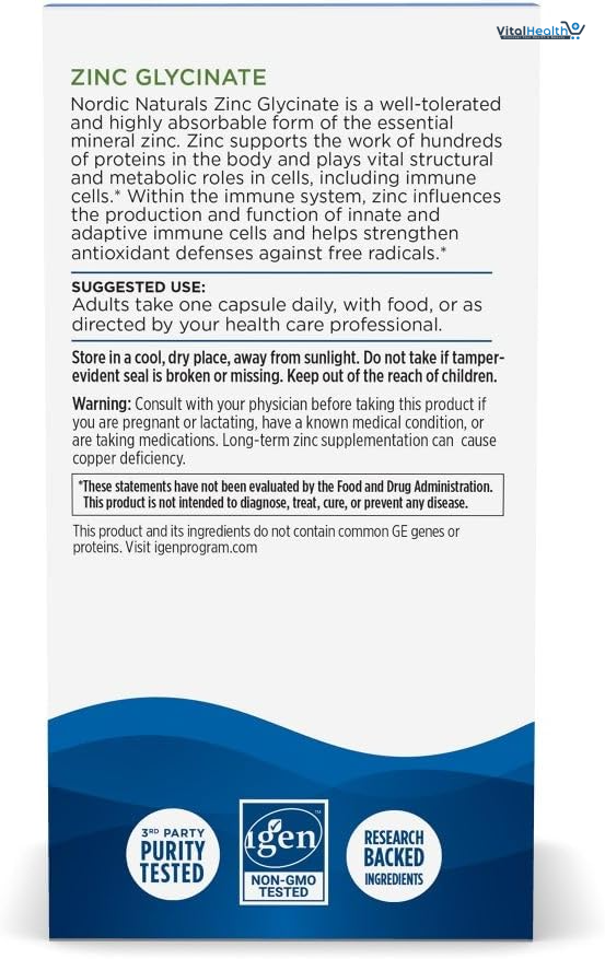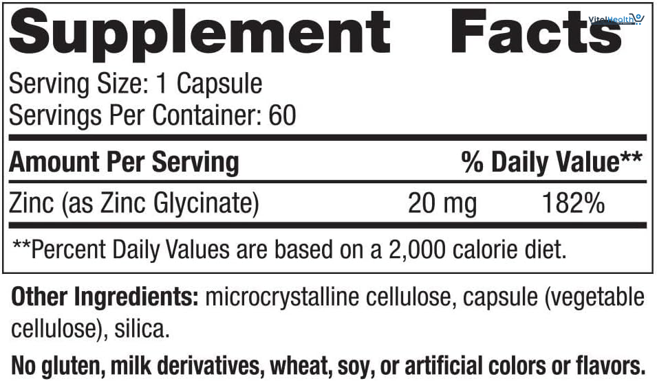 Zinc Glycinate delivers a substantial daily serving of the essential mineral zinc in a highly bioavailable formula to support immune system health, enzyme function, and antioxidant activity. Zinc Glycinate is a well-tolerated form of zinc made for better absorption by the body. It delivers a beneficial daily serving of this important mineral to support cellular immune functions and strengthen the body's antioxidant defenses.