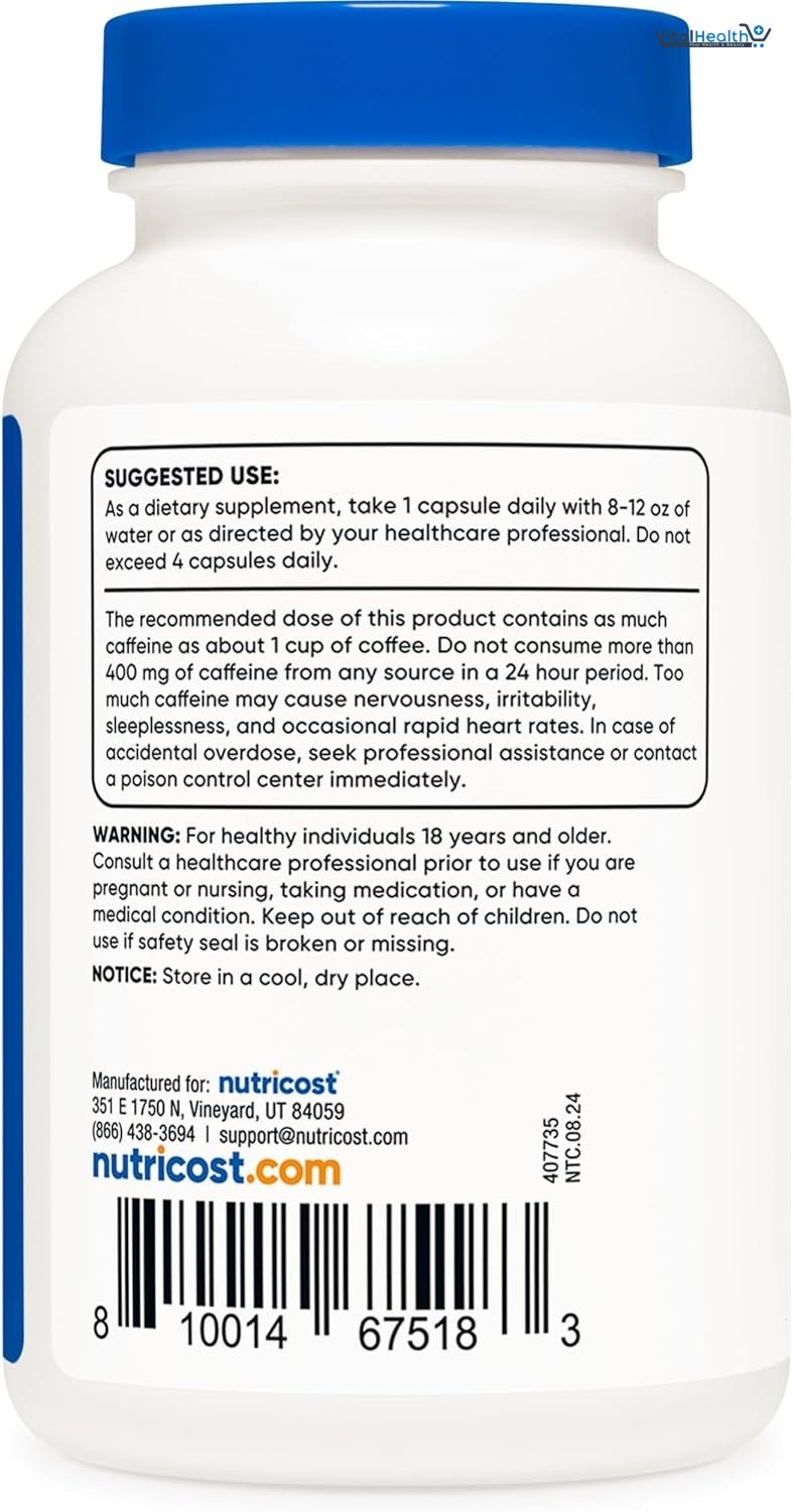 Energize Your Day: Nutricost Caffeine Capsules provide a boost of energy to help you stay focused and alert throughout the day.