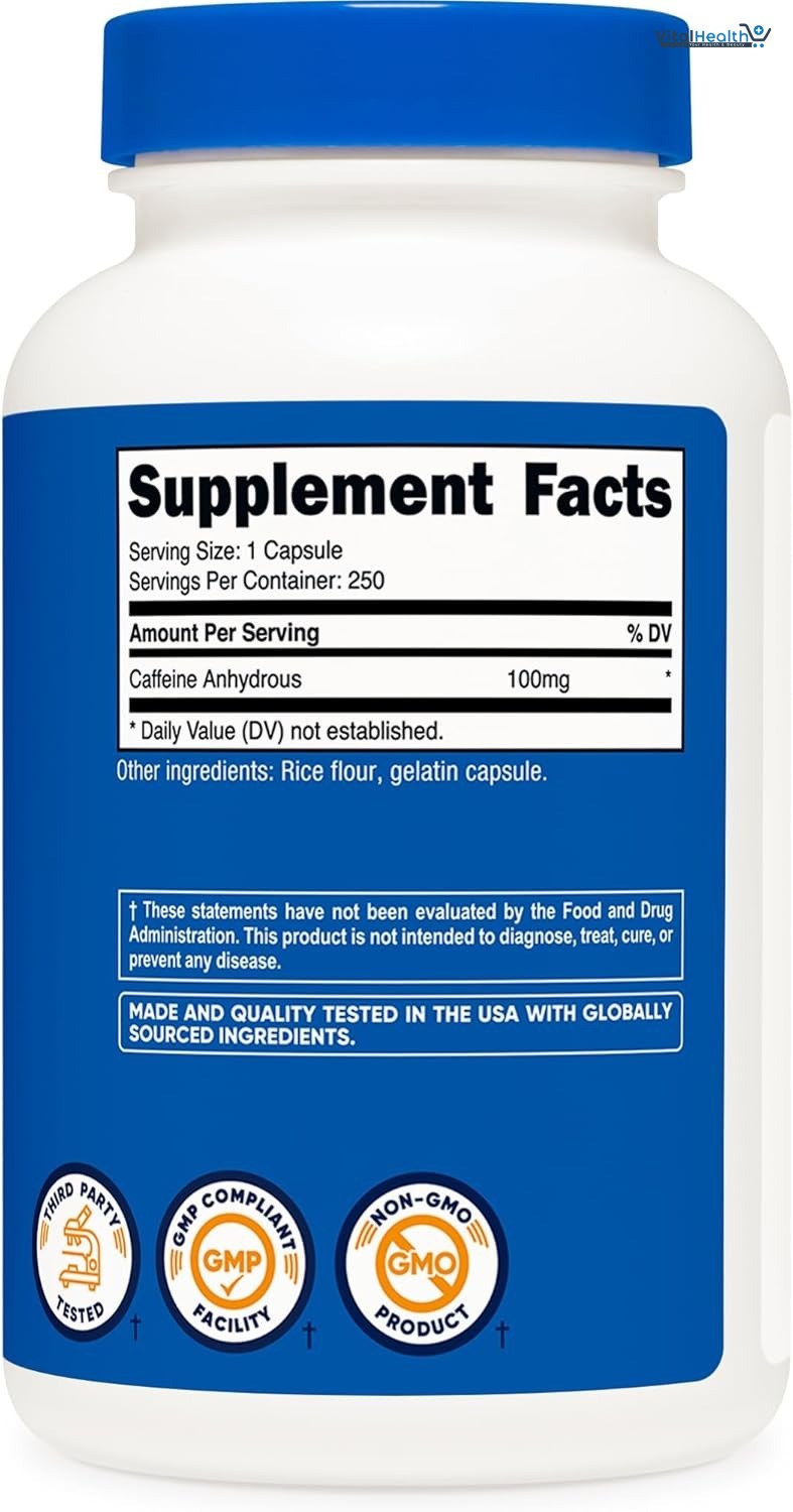 Convenient and Effective Capsule Formulation: Each bottle contains 250 or 500 capsules, making it easy to take your desired caffeine dose on the go.