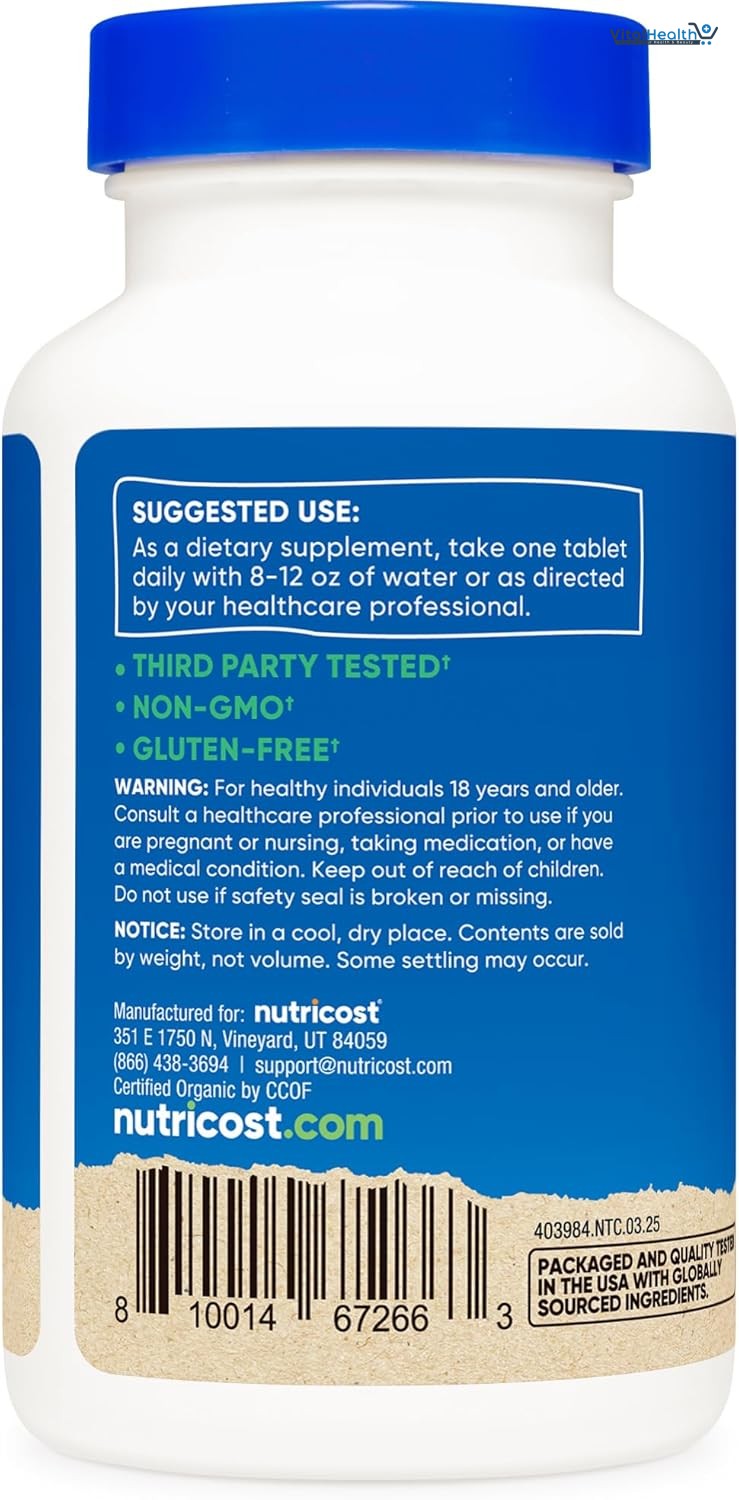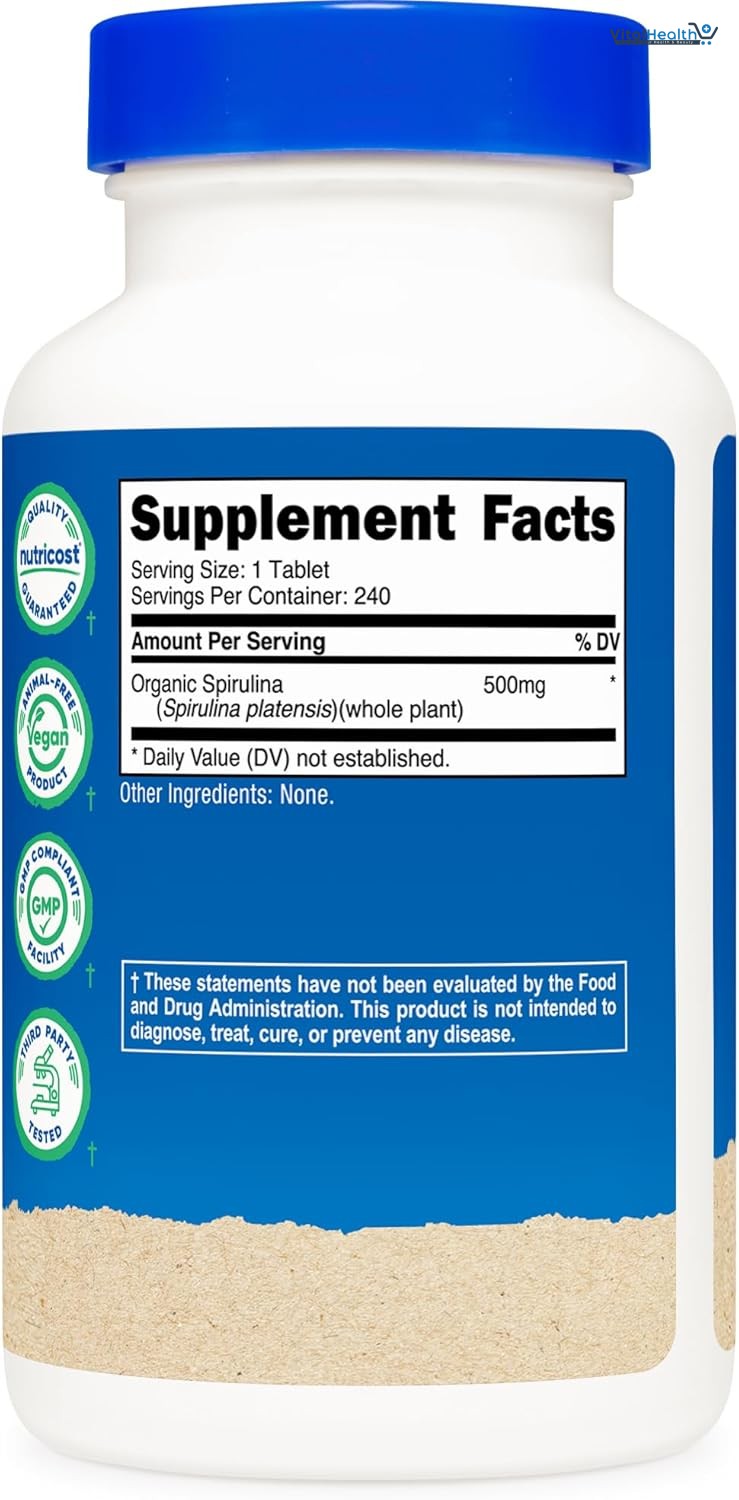 Nutricost Spirulina tablets are CCOF Certified USDA Organic. Each tablet contains 500mg of organic spirulina and each bottle contains 240 tablets. They are non-gmo, gluten free, soy free, and made in a GMP Compliant, FDA registered facility.