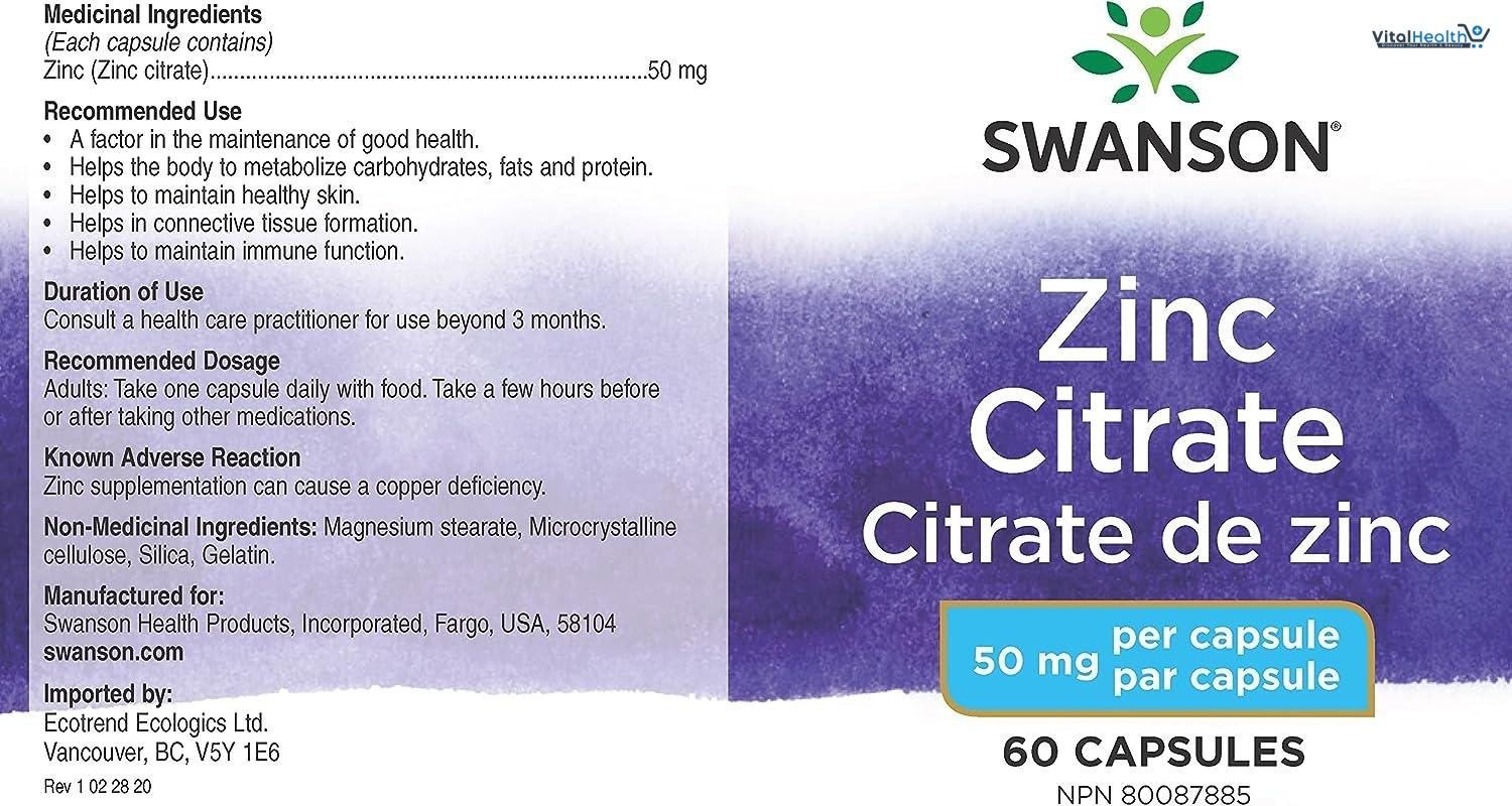 Zinc (from zinc citrate) 30 mg (DV 273%)